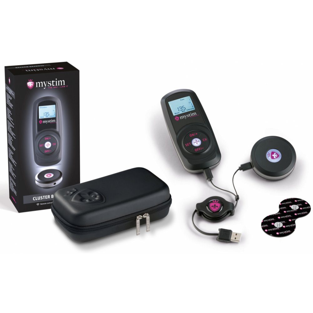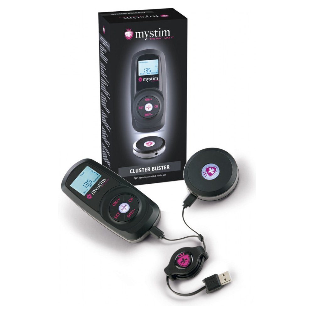 Cluster Buster obsahuje dálkové ovládání a přijímač, který je kompatibilní se všemi dalšími Mystim doplňky, jež můžete ovládat na dálku. Generátor vám dovolí ovládnout několik hraček najednou, má totiž 8 kanálů s individuálně nastavitelnou intenzitou.