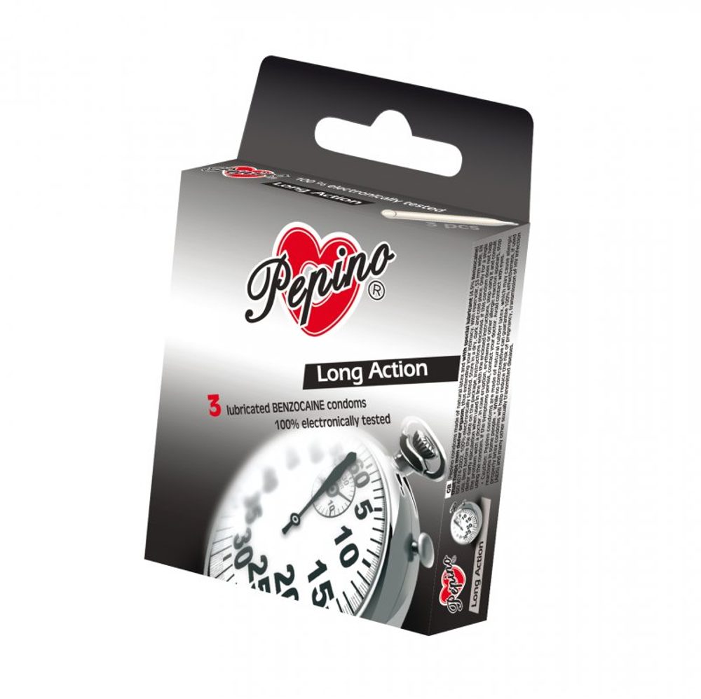 PEPINO kondomy z přírodního latexu se speciálním lubrikantem, který napomáhá u mužů oddálit vyvrcholení a tak prodlouží Váš intimní styk, s rezervoárem. Šířka 53mm. 100% elektronicky testováno. Skladujte na suchém a chladném místě. Jen na jedno použití. 3ks v krabičce.