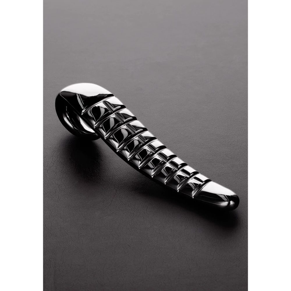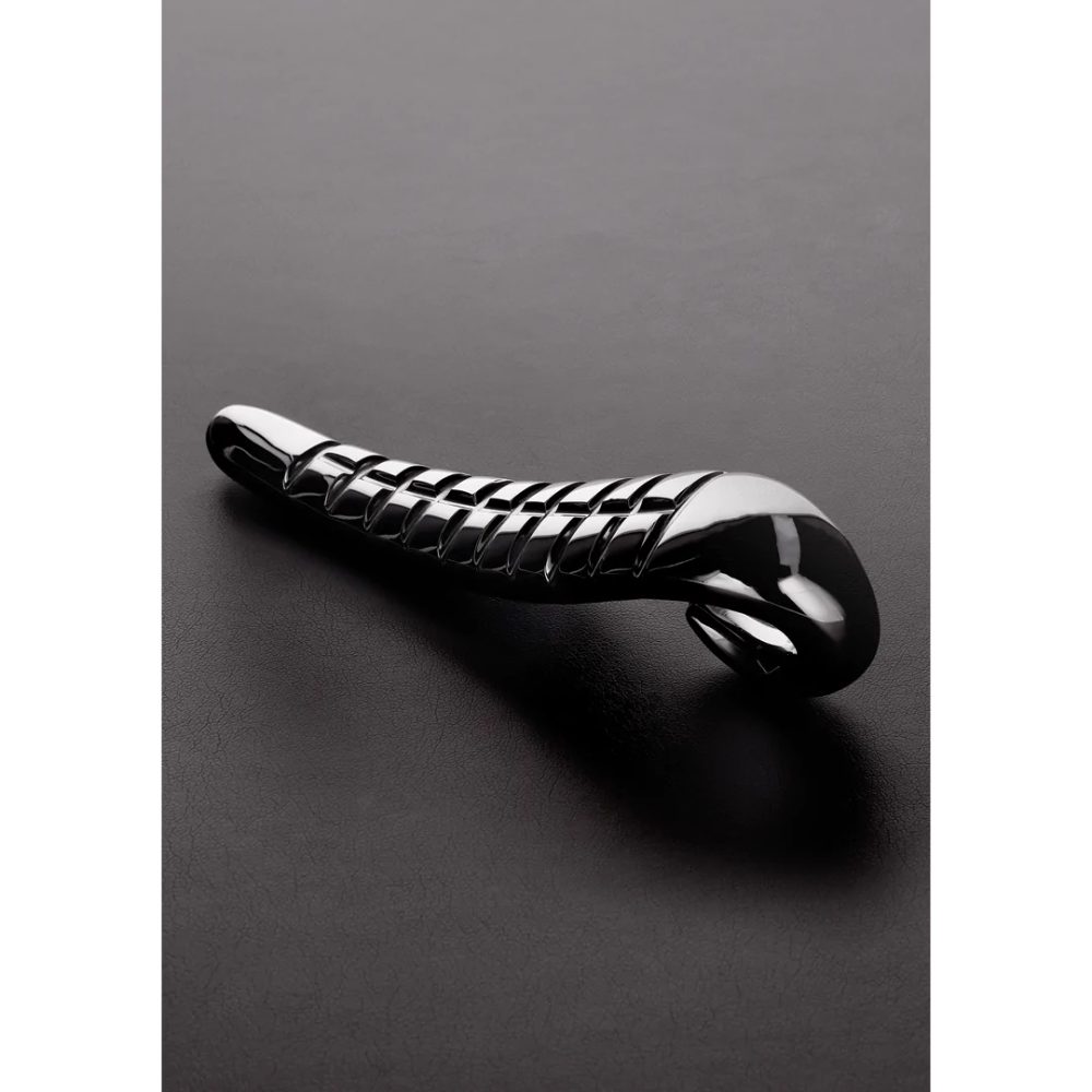 Zahnutý konec slouží jako pohodlná rukojeť pro jistý úchop i při dynamičtějších hrách. Díky hladkému povrchu z nerezové oceli je hračka hygienická, snadno omyvatelná a ideální i pro teplotní hrátky – lze ji opatrně nahřát nebo zchladit ve vodní lázni a zesílit tak celkový prožitek. Elegantní kovový design v sobě spojuje odolnost, dlouhou životnost a luxusní vzhled.